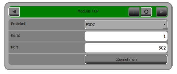 | port | integer | TCP Port of your E3DC device Modbus Settings.. Default is 502 |