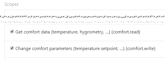 On Step 2, please make sure to select both comfort.read and comfort.write scopes, as they're mandatory for the bridge to manage its chronothermostat devices.